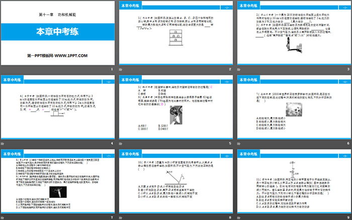 关键词:人教版八年级物理下册PPT课件免费下载,本章中考练PPT下载,功和机械能PPT下载,.PPT格式;