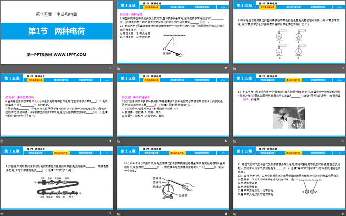 关键词:人教版九年级物理全一册PPT课件免费下载,两种电荷PPT下载,电流和电路PPT下载,.PPT格式;