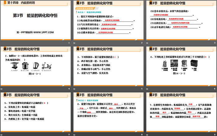 关键词:人教版九年级物理全一册PPT课件免费下载,能量的转化和守恒PPT下载,内能的利用PPT下载,.PPT格式;