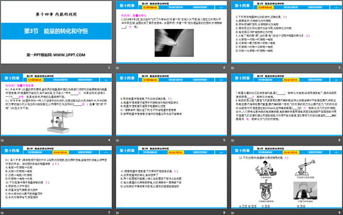 关键词:人教版九年级物理全一册PPT课件免费下载,能量的转化和守恒PPT下载,内能的利用PPT下载,.PPT格式;