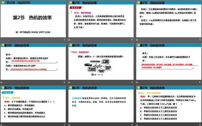 关键词:人教版九年级物理全一册PPT课件免费下载,热机的效率PPT下载,内能的利用PPT下载,.PPT格式;