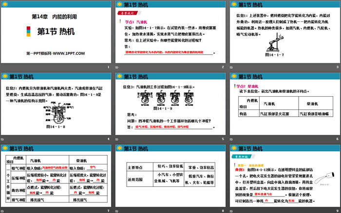关键词:人教版九年级物理全一册PPT课件免费下载,热机PPT下载,内能的利用PPT下载,.PPT格式;