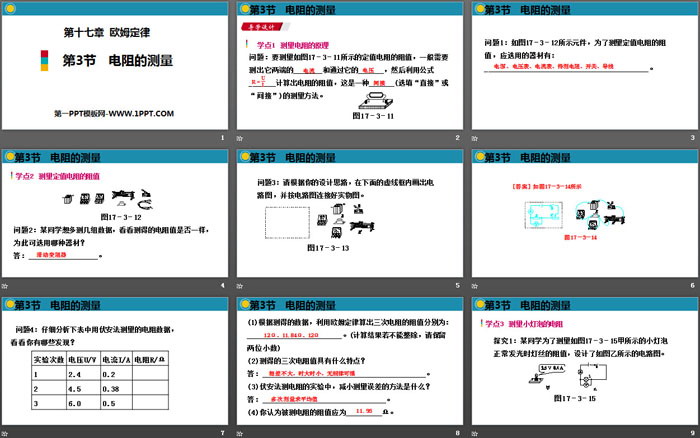 关键词:人教版九年级物理全一册PPT课件免费下载,电阻的测量PPT下载,欧姆定律PPT下载,.PPT格式;
