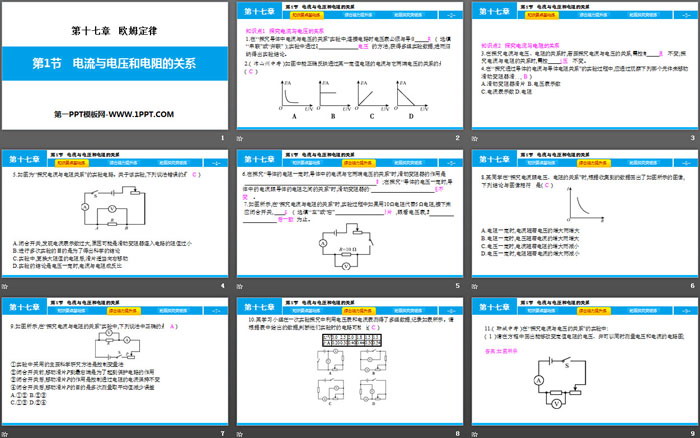 关键词:人教版九年级物理全一册PPT课件免费下载,电流与电压和电阻的关系PPT下载,欧姆定律PPT下载,.PPT格式;