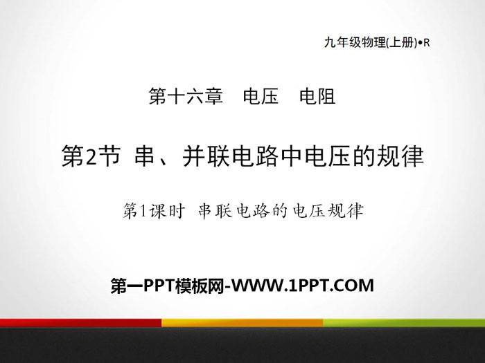 关键词:人教版九年级物理全一册PPT课件免费下载,串并联电路中电压的规律PPT下载,电压电阻PPT下载,串联电路的电压规律PPT下载,.PPT格式;