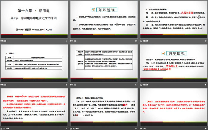 关键词:人教版九年级物理全一册PPT课件免费下载,家庭电路中电流过大的原因PPT下载,生活用电PPT下载,.PPT格式;