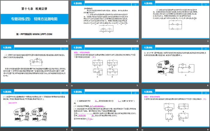 关键词:人教版九年级物理全一册PPT课件免费下载,特殊方法测电阻PPT下载,欧姆定律PPT下载,.PPT格式;