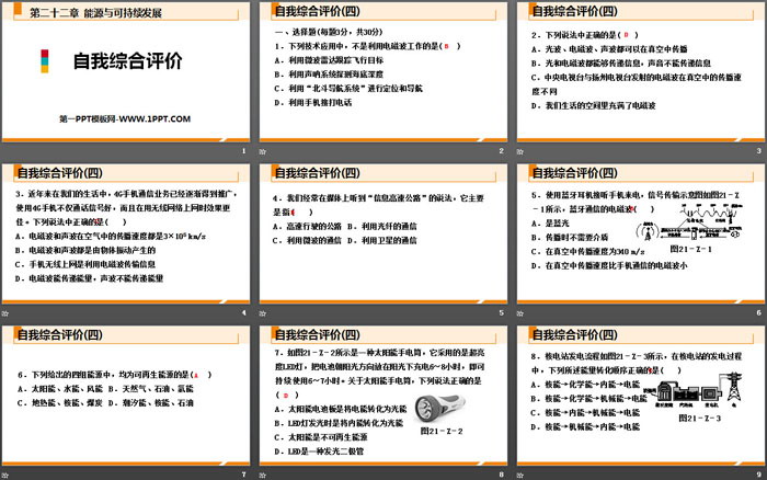 关键词:人教版九年级物理全一册PPT课件免费下载,自我综合评价PPT下载,能源与可持续发展PPT下载,.PPT格式;
