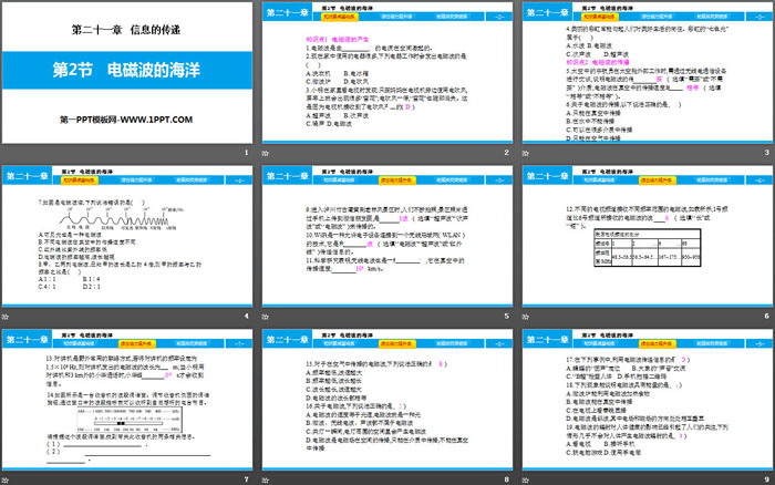 关键词:人教版九年级物理全一册PPT课件免费下载,电磁波的海洋PPT下载,信息的传递PPT下载,.PPT格式;