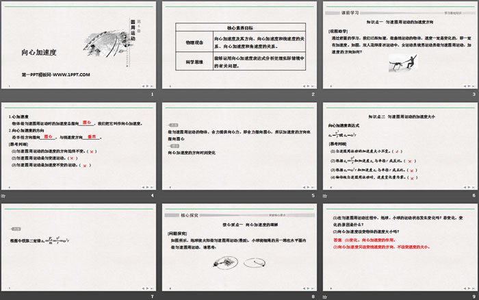 关键词:人教版高中物理必修二PPT课件免费下载,向心加速度PPT下载,圆周运动PPT下载,.PPT格式;