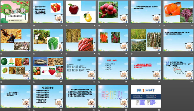 关键词:金色的秋天教学课件,秋天的收获教学课件,人教版二年级上册品德与生活PPT课件下载,二年级品德与生活幻灯片课件下载,金色的秋天PPT课件下载,秋天的收获PPT课件下载,.PPT格式;