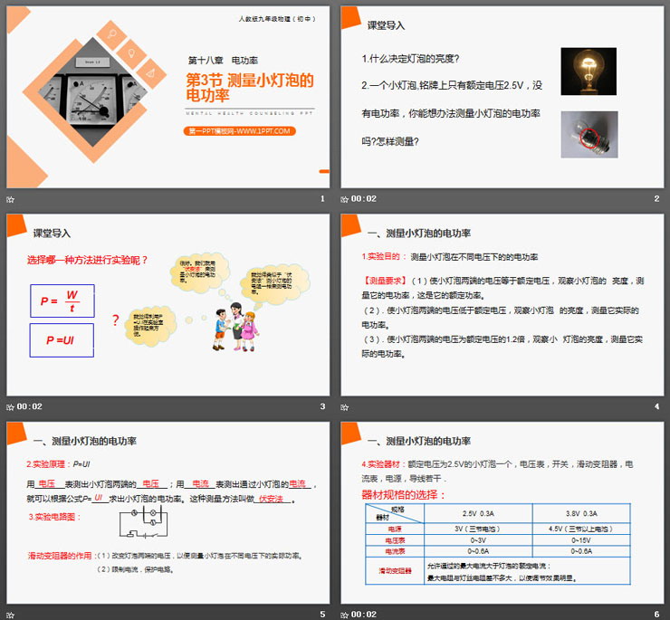 关键词:测量小灯泡的电功率PPT课件免费下载,电功率PPT下载,.PPT格式;