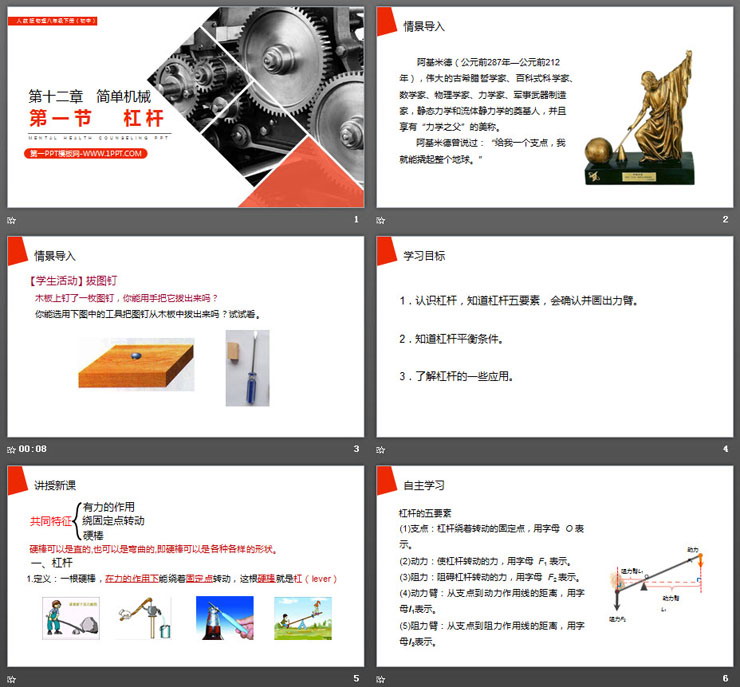关键词:杠杆PPT课件免费下载,简单机械PPT下载,.PPT格式;