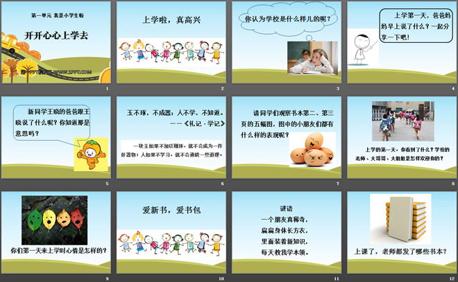 关键词:人教版一年级上册道德与法治PPT课件免费下载,我是小学生啦PPT课件,开开心心上学去PPT课件,.PPT格式;