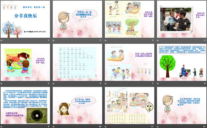 关键词:人教版一年级下册道德与法治PPT课件免费下载,分享真快乐PPT下载,我们在一起PPT下载,.PPT格式;