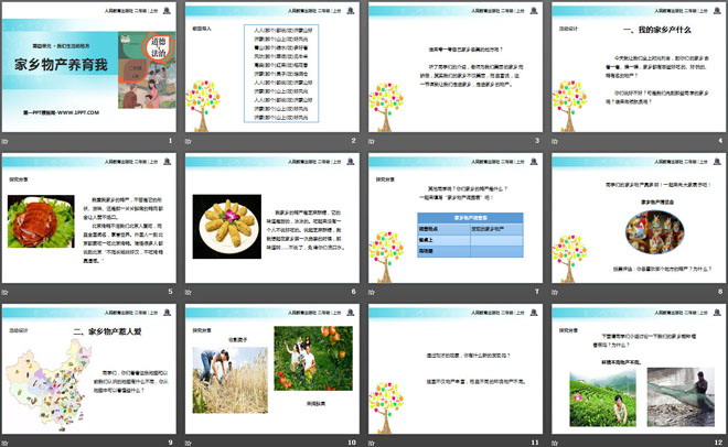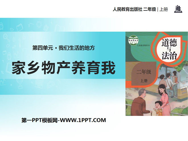 关键词:人教版二年级上册道德与法治PPT课件免费下载,家乡物产养育我PPT下载,我们生活的地方PPT下载,.PPT格式;
