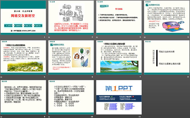 关键词:人教版七年级上册道德与法治PPT课件免费下载,网上交友新时空PPT下载,交友的智慧PPT下载,.PPT格式;