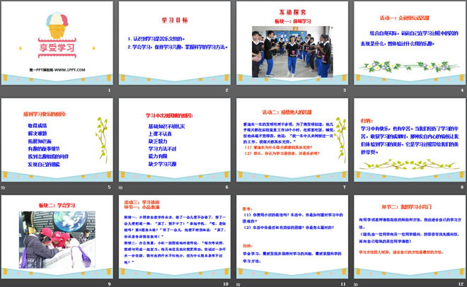 学习中有苦更有乐。我们在享受学习的过程中,要发现并保持对学习的乐趣,掌握适合自己的学习方法,善于运用不同的学习方式学习。