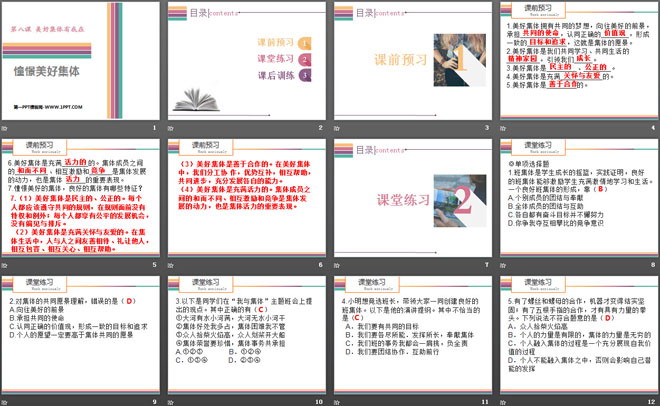憧憬美好集体PPT,第二部分内容:课堂练习