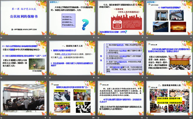 关键词:人教版八年级下册道德与法治PPT课件免费下载,公民权利的保障书PPT课件,维护宪法权威PPT课件,.PPT格式;