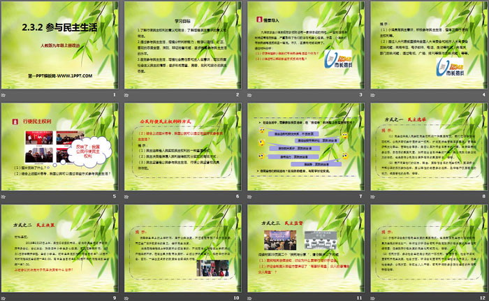 关键词:人教版九年级全一册道德与法治PPT课件免费下载,参与民主生活PPT下载,追求民主价值PPT下载,.PPT格式;