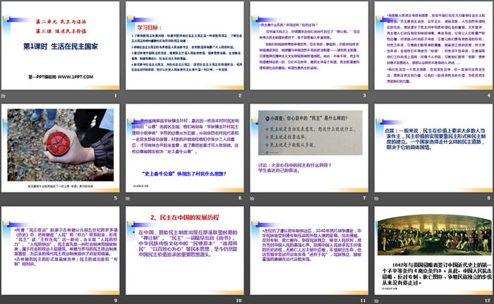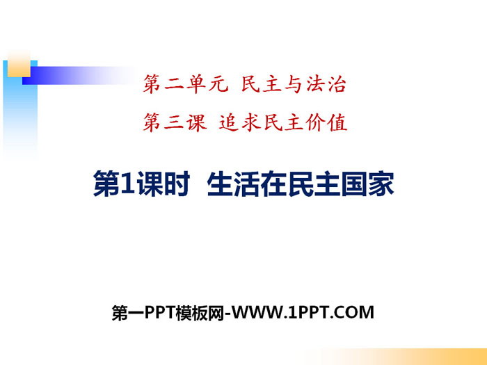 关键词:人教版九年级全一册道德与法治PPT课件免费下载,生活在民主国家PPT下载,追求民主价值PPT下载,.PPT格式;