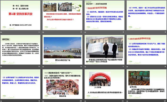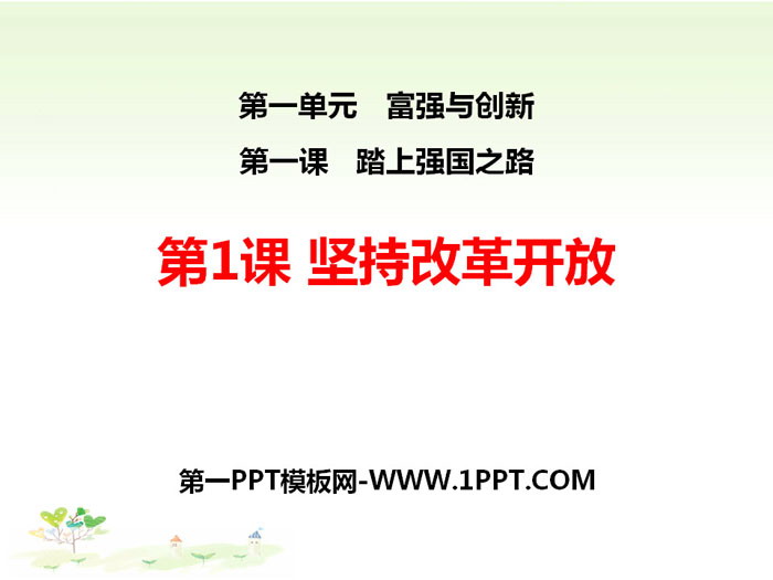 关键词:人教版九年级全一册道德与法治PPT课件免费下载,坚持改革开放PPT,踏上强国之路PPT下载,.PPT格式;