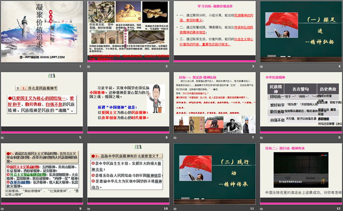 凝聚价值追求PPT,第二部分内容:(一)探足迹--精神弘扬