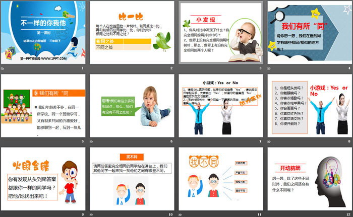 不一样的你我他PPT,第三部分内容:找不同