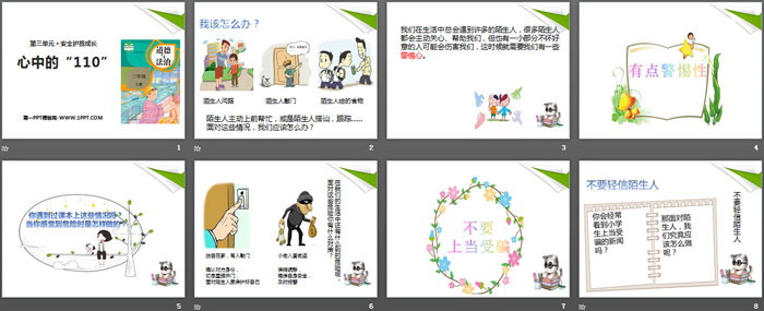 关键词:人教版三年级上册道德与法治PPT课件免费下载,心中的110PPT下载,安全护我成长PPT下载,.PPT格式;