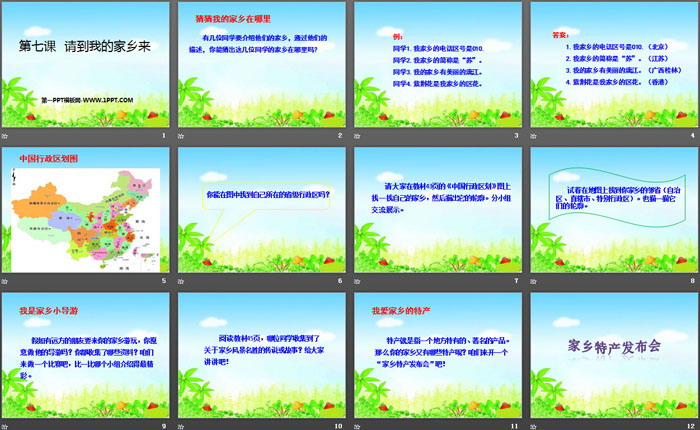 请到我的家乡来PPT,第六部分内容:课堂小结
