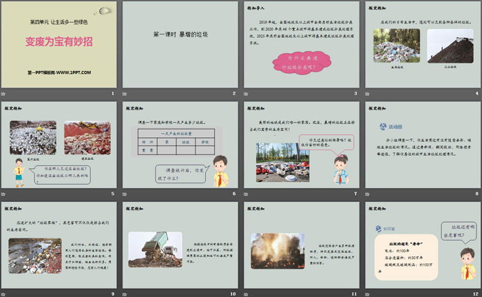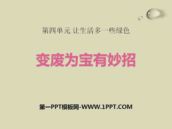 关键词:人教版四年级上册道德与法治PPT课件免费下载,变废为宝有妙招PPT下载,让生活多一些绿色PPT下载,.PPT格式;