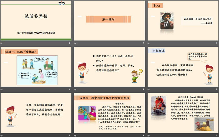 总结:上了这堂课,你觉得守信重要吗?说话不算数只会给我们带来害处,而守信却能带给我们尊重,如何选择一目了然。