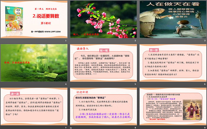 关键词:人教版四年级下册道德与法治PPT课件免费下载,说话要算数PPT下载,同伴与交往PPT下载,.PPT格式;