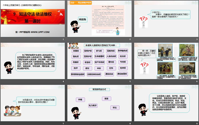 关键词:人教版六年级上册道德与法治PPT课件免费下载,知法守法依法维权PPT下载,法律保护我们健康成长PPT下载,.PPT格式;