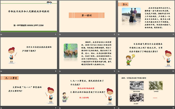 导入:在祖国危难时刻,中国人民万众一心,与日本侵略者展开了顽强的斗争,抗日烽火燃遍神州大地。