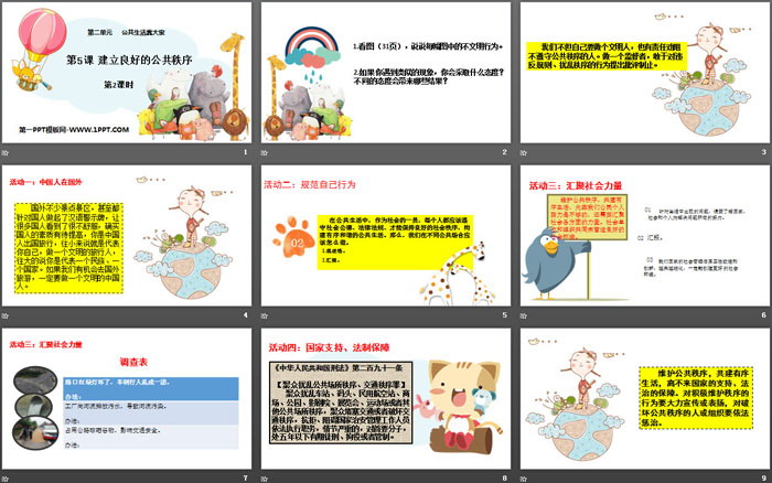 关键词:人教版五年级下册道德与法治PPT课件免费下载,建立良好的公共秩序PPT下载,公共生活靠大家PPT下载,.PPT格式;