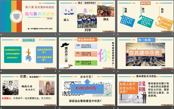 关键词:人教版七年级下册道德与法治PPT课件免费下载,我与集体共成长PPT下载,.PPT格式;