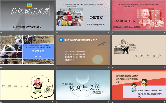 关键词:人教版八年级下册道德与法治PPT课件免费下载,依法履行义务PPT下载,.PPT格式;