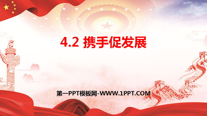 关键词:人教版九年级下册道德与法治PPT课件免费下载,携手促发展PPT下载,与世界共发展PPT下载,.PPT格式;