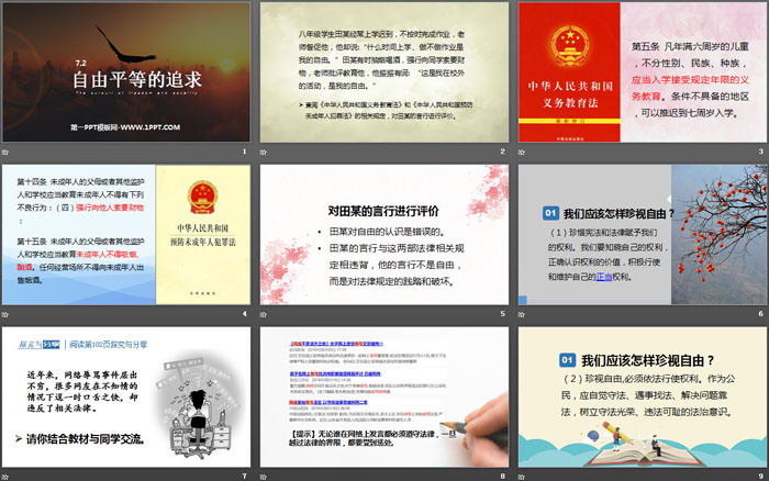 关键词:人教版八年级下册道德与法治PPT课件免费下载,自由平等的追求PPT下载,.PPT格式;