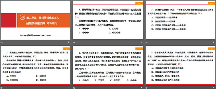 关键词:人教版七年级下册道德与法治PPT课件免费下载,品出情感的韵味PPT下载,做情绪情感的主人PPT下载,综合练习PPT下载,.PPT格式;