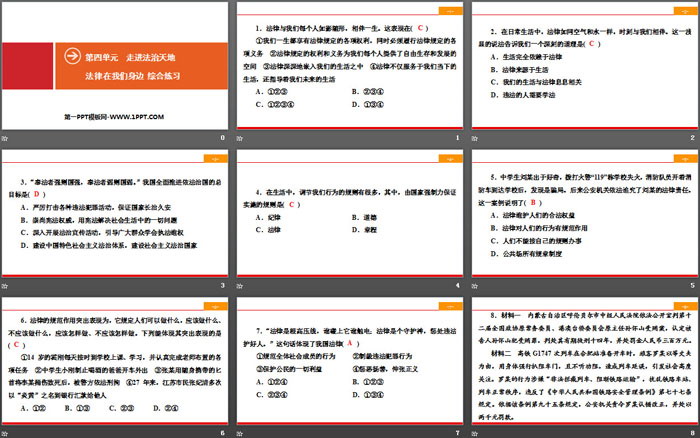 关键词:人教版七年级下册道德与法治PPT课件免费下载,法律在我们身边PPT下载,走进法治天地PPT下载,综合练习PPT下载,.PPT格式;