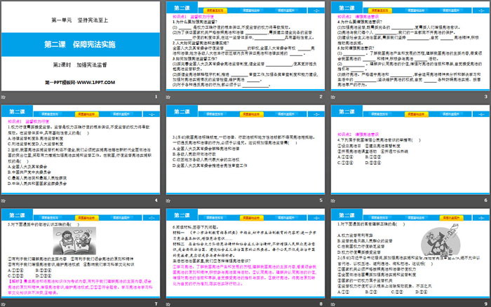 关键词:人教版八年级下册道德与法治PPT课件免费下载,保障宪法实施PPT下载,坚持宪法至上PPT下载,加强宪法监督PPT下载,.PPT格式;
