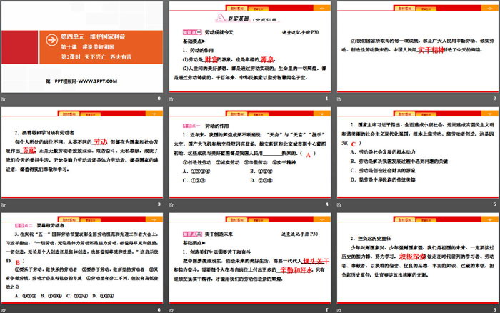 (2)人世间的美好梦想,都是通过劳动实现的;生命里的一切辉煌,都是通过劳动铸就的。千百年来,中华民族素以勤劳智慧闻名于世。