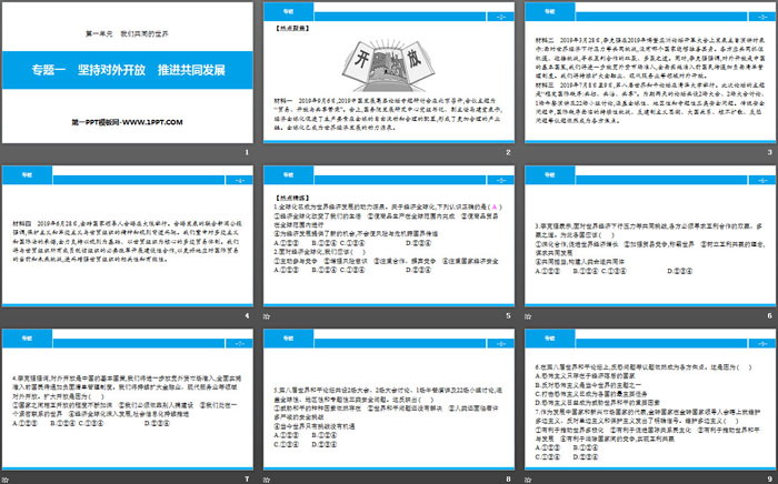 关键词:人教版九年级下册道德与法治PPT课件免费下载,坚持对外开放推进共同发展PPT下载,我们共同的世界PPT下载,.PPT格式;