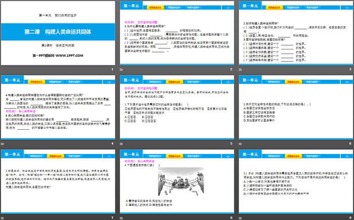 关键词:人教版九年级下册道德与法治PPT课件免费下载,构建人类命运共同体PPT下载,我们共同的世界PPT下载,谋求互利共赢PPT下载,.PPT格式;
