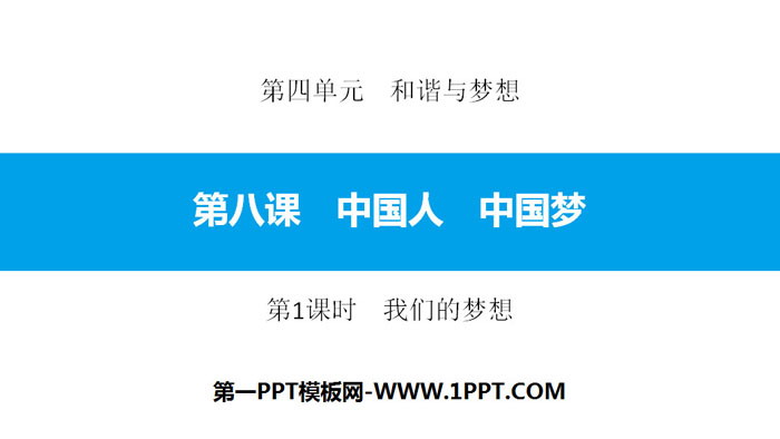关键词:人教版九年级上册道德与法治PPT课件免费下载,中国人中国梦PPT下载,和谐与梦想PPT下载,我们的梦想PPT下载,.PPT格式;