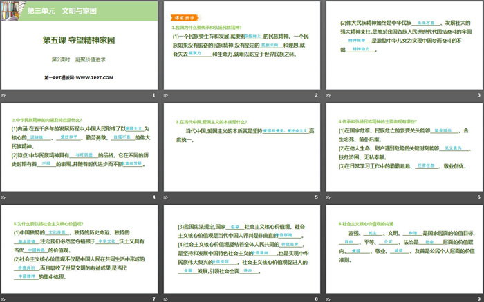 关键词:人教版九年级上册道德与法治PPT课件免费下载,守望精神家园PPT下载,文明与家园PPT下载,凝聚价值追求PPT下载,.PPT格式;