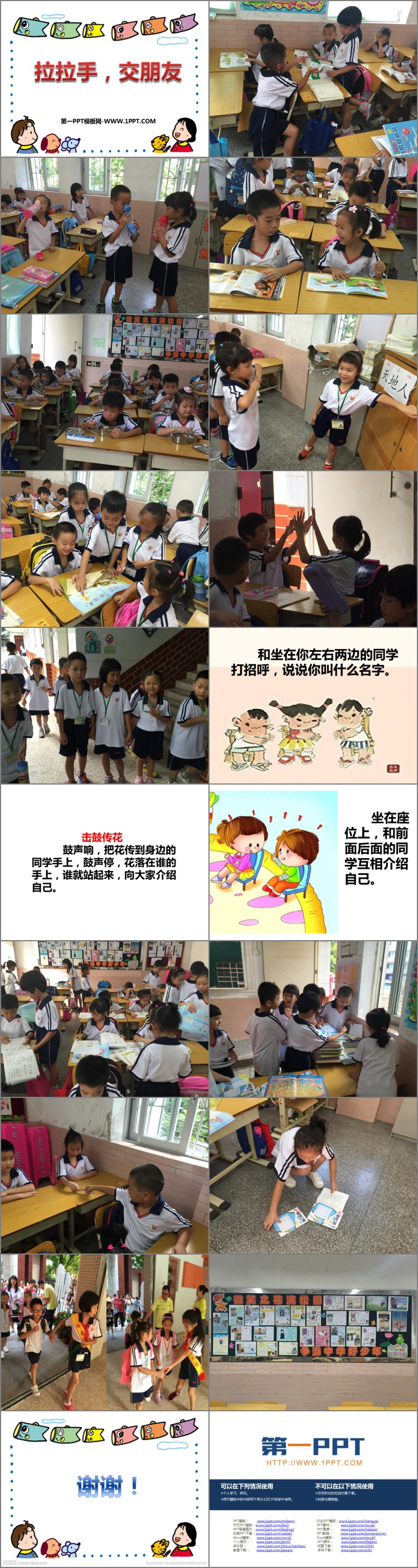 《拉拉手 交朋友》PPT课件包含击鼓传花、看图片等内容。